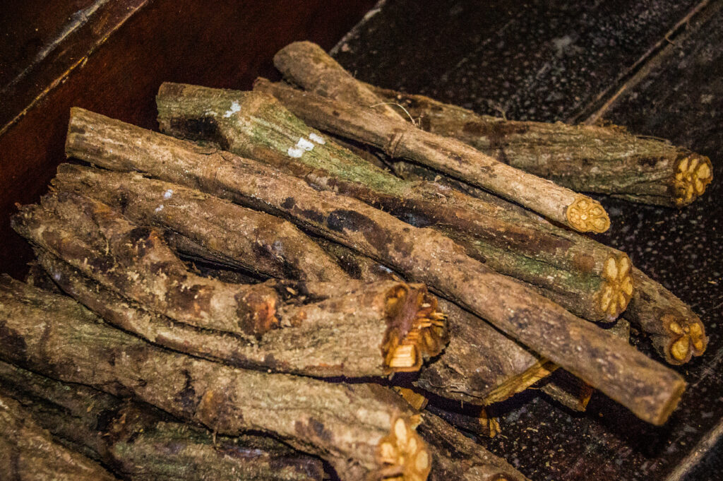Image: Cuttings of Banisteriopsis caapi to be used in the preparation of the ayahuasca decoction (Photo by Apollo via Wikimedia Commons)
